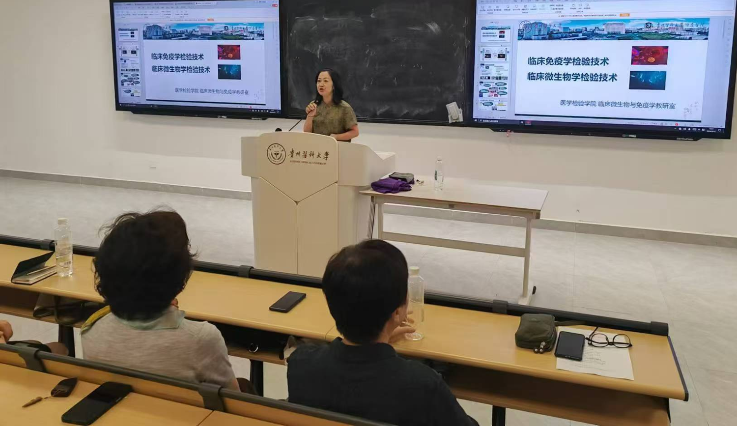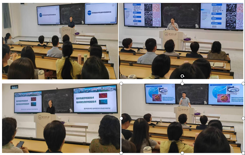副院长费樱通过介绍教育部对医学检验技术专业学生的培养要求、详细阐述了大学期间的专业课程设置以及实习和毕业的基本要求。随后,临床检验学教研室主任谢婷婷、临床微生物与免疫学教研室主任余芳、临床生物化学与分子生物学教研室主任韦四喜先后从研究内容、教学目标、临床意义等方面介绍了各门专业课程的具体情况。