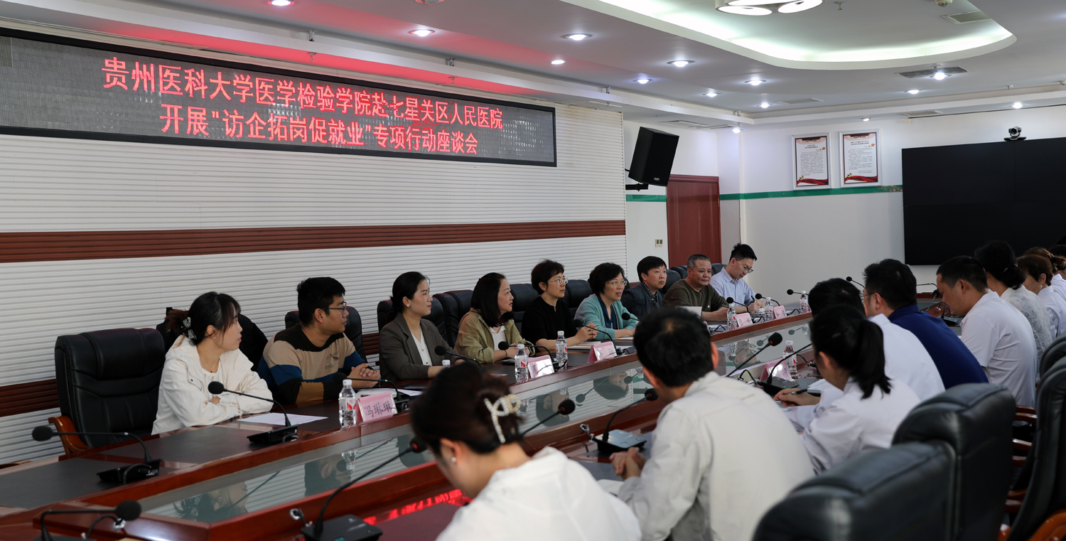 下午我院一行前往浙江省人民医院毕节医院(毕节市第一人民医院)进行交流。医院党委委员、副院长张庆刚,副院长贺电以及相关科室负责人参加交流活动。我院院长谭玉洁从学院历史、教学科研、学生培养等方面介绍了学院的基本情况。紧接着,医院人事科、检验科主要负责人介绍了检验专业学生的招聘和实习情况,双方针对具体问题进行了深入交流。随后,我院党委书记李雪梅介绍了今年大学毕业生的就业情况,希望医院能够充分发挥在当地的影响力帮助学生实现就业。座谈结束后,我院一行在医院相关领导和科室负责人的陪同下到检验科进行了实地参观和交流。
