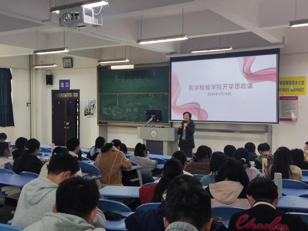 为加强思想引领,引导学生“厚植爱国情,践行报国志”。2024年3月14日,betway西汉姆联平台院长谭玉洁在北校区基础2号楼2501教室为学生讲开学思政课。2021级医学检验技术全体学生参加,活动由辅导员苏曦主持。