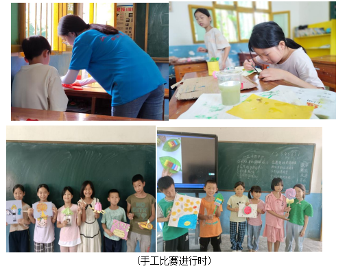 7月27日,实践队在硐溪小学开展小制作大赛。希望通过这一活动,让学生更加关注生活,热爱生活。手工比赛上,折纸、绘画……一件件手工作品,都是孩子们用心制作,都是孩子们爱的表达,美的创作。手工制作在孩子们的眼中,就像缤纷的彩虹,他们可以用它编织七彩的梦想。每个孩子心中也都有一支美妙的画笔,他们用一双灵动的手,画出自己眼中的美丽世界。