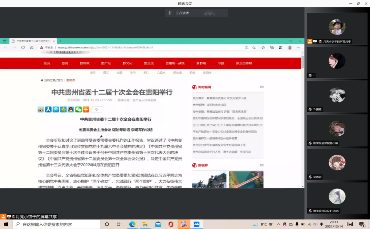为认真学习宣传贯彻党的十九届六中全会精神和省委十二届十次全会精神,深刻领会精神实质。2021年12月14日—18日,我院学生科、分团委组织各年级学生通过线上线下形式开展“党的十九届六中全会精神和省委十二届十次全会精神”专题学习会。