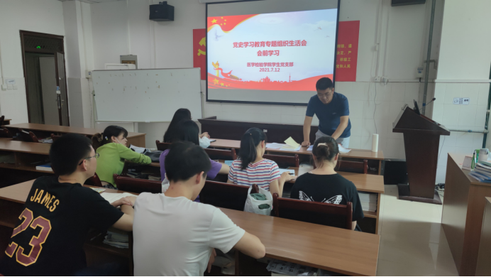 为推进党史学习教育,开好专题组织生活会。2021年7月12日,根据相关工作要求,betway西汉姆联平台学生党支部在北校区基础2号楼四楼党员活动室开展党史学习教育专题组织生活会会前学习活动。学生支部党员参加。会议由支部纪检委员苏曦主持。