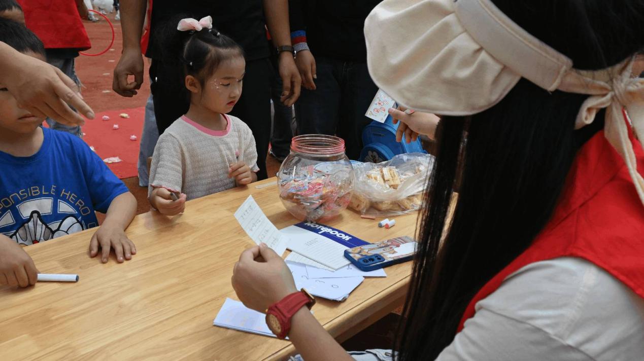天气晴朗万物明,活动正式拉开帷幕,做手工、看表演、玩游戏、乐交易、兑奖励,活动形式多种多样。我院志愿者们也搭建了两个活动摊位,用套圈游戏和算术游戏给小朋友们带来乐趣,同时也锻炼小朋友们的眼力和脑力。整个活动现场充满了小朋友和家长们的欢声笑语。