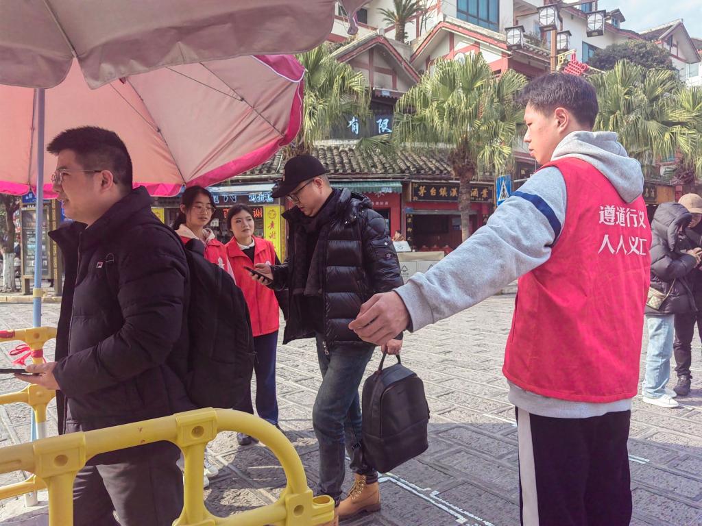 实践内容:参与遵义义工青年志愿服务队组织的“2023-2024纪念馆窗口服务”,帮助维持游客进入会址的秩序,帮助游客扫码预约进入会址,在街道为有需要的游客提供帮助等。