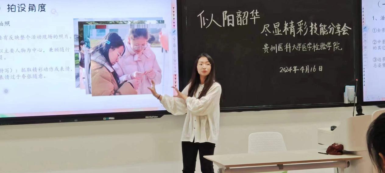 本期活动邀请了我院辅导员陈阳老师和医学检验技术2022级李仕萍同学为大家带来活动(会议)拍照技巧和视频剪辑技巧分享。