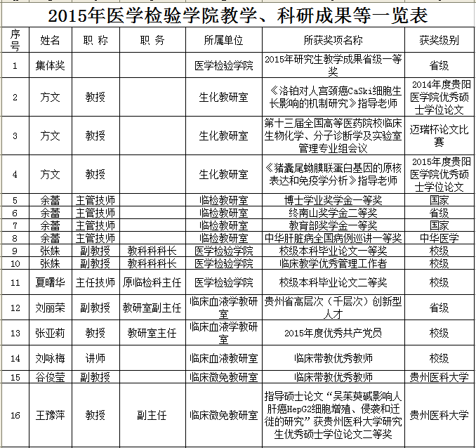 2015年betway西汉姆联平台教学、科研成果等一览表