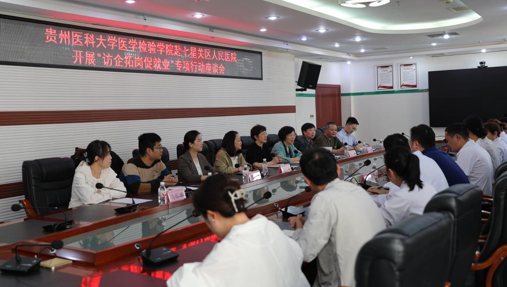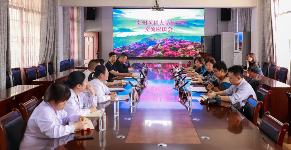 17日上午,我院一行到达七星关区人民医院。七星关区人民医院党委书记刘咏梅、党委委员、纪委书记郭正松、党委委员、院长助理陈菊、副院长曹坤以及医院相关科室负责人与我院进行工作对接。刘咏梅详细介绍了七星关区人民医院的整体情况并对我院一行表示热烈的欢迎。谭玉洁从访企拓岗、实习基地拓展等方面介绍了我院此行的主要目的。随后双方针对学生实习、就业以及相关科研工作进行了深入探讨并达成初步共识。李雪梅从大学生就业工作的重要社会意义和对医院发展的支撑作用等方面进行了介绍,希望医院能够助力就业,实现共赢。