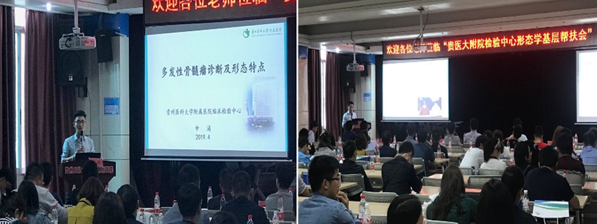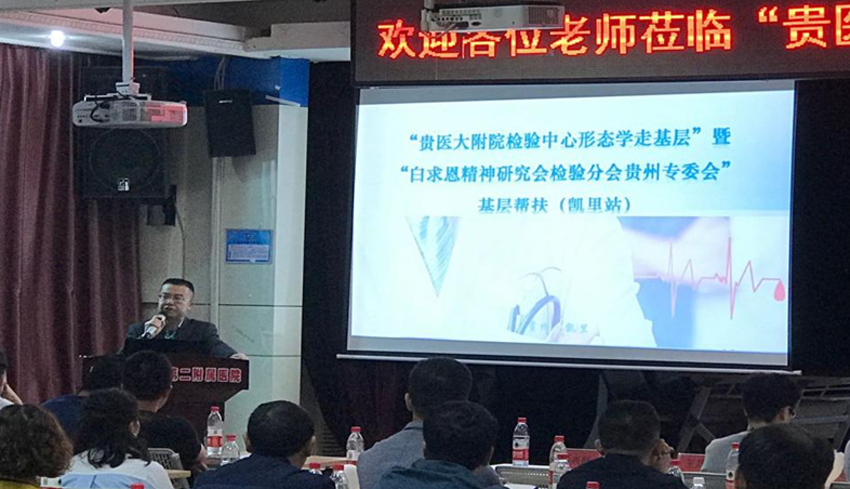 2019年4月27日,“贵医大附院检验中心形态学走基层”暨“白求恩精神研究会检验分会贵州专委会”基层帮扶活动(黔东南站)如期举行。betway西汉姆联平台及附院临床检验中心血液体液科莫非主任带领学科技术骨干团队前往凯里,在betway西汉姆联第二附属医院的支持下,黔东南州各县级医院及部分乡镇医院检验人员100余人参加了此次培训会。
