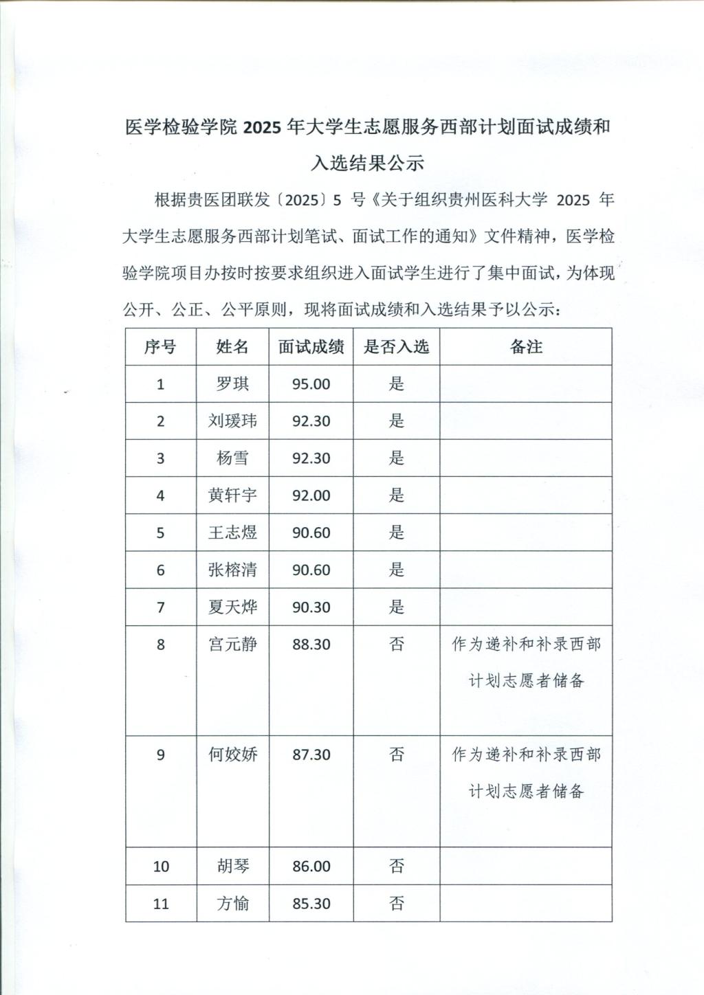 betway西汉姆联平台2025年大学生志愿服务西部计划面试成绩和入选结果公示