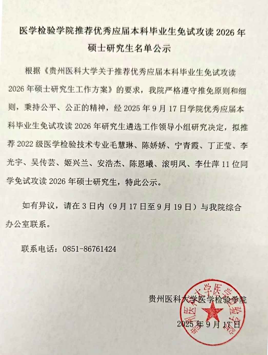 betway西汉姆联平台推荐优秀应届毕业生免试攻读2026年硕士研究生名单公示