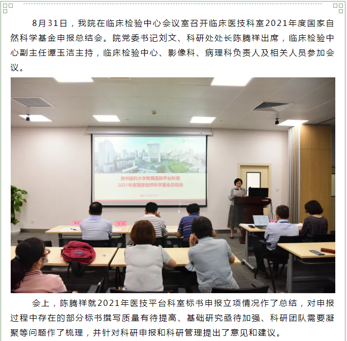 betway西汉姆联平台召开医技科室2021年国自然申报总结会