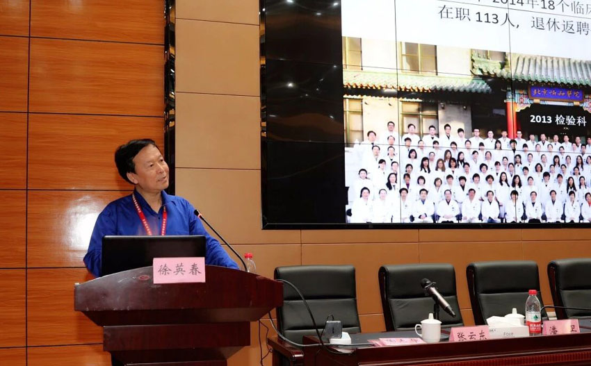 论坛由中国医学科学院北京协和医学院培训中心提供智力支持,北京协和医学院临床检验诊断学系主任、北京协和医院检验科主任、国家卫生健康委员会合理用药专家委员会抗菌药物专业组副组长徐英春教授为大会作主题报告“新医改形势下的检验中心管理”。