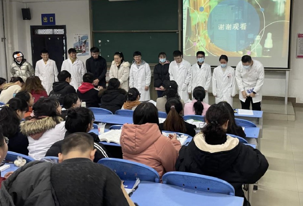 根据中共中央、国务院《关于加强和改进新形势下高校思想政治工作的意见》提出的坚持全员全过程全方位育人(简称“三全育人”)的要求,结合本教研室和支部开展的特色项目2019级医学检验技术专业辅导员计划“走进校园,我们和你一起共成长”系列教学活动,为了让同学们更好的掌握和巩固《临床基础检验学》的教学内容,12月13日上午在基础二号楼2401教室开展“开学第一讲系列活动——情景式互动病例汇报”。活动由教学秘书朱丽英主持,支部书记刘咏梅、研究生科科长谢婷婷、教科科副科长王世君和输血科副主任黄吉娥老师及2019级医学检验技术专业全体同学共计100多名师生参加活动。