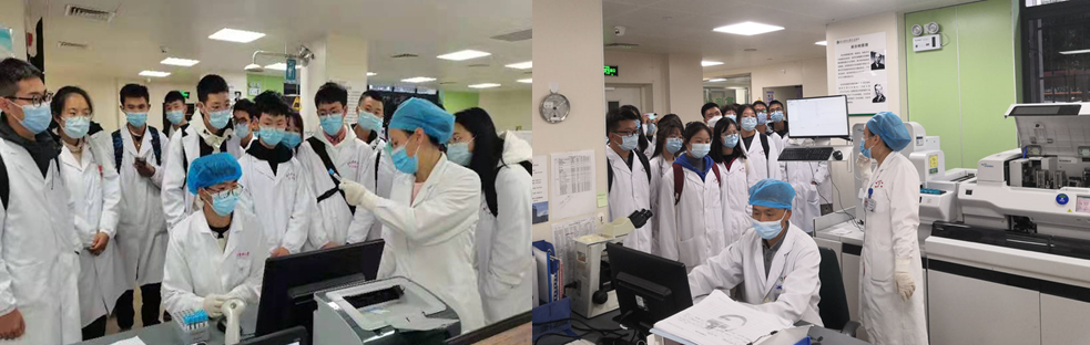 见面会结束后,2018级实习生带领新生到附属医院临床检验中心进行实地参观学习。