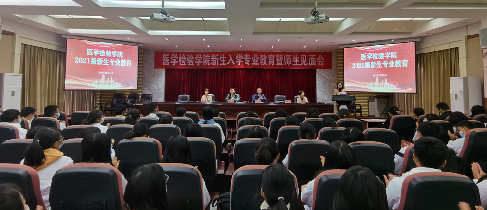 金秋十月,相识医检。为增强新生的专业认知度,强化学生的家校情怀。10月16日,在学院党委的统一安排下,我院在北校区道德讲堂开展新生专业教育。学院党政班子、相关部门主要负责人以及老师参加活动。活动由正处级组织员杨飏主持。