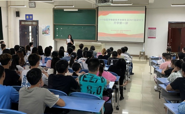 金秋九月,2019级的同学们进入专业课学习,同时也迎来了2021级研究生。根据中共中央、国务院《关于加强和改进新形势下高校思想政治工作的意见》提出的坚持全员全过程全方位育人(简称“三全育人”)的要求,本教研室和支部结合开展的本科生专业辅导员计划“走进校园,我们和你一起共成长”系列教学活动,为了让同学们进一步明确学习方向,了解医学检验专业的发展。9月8日下午,临床检验基础与血液学检验教研室邀请了betway西汉姆联平台研究生科科长谢婷婷副教授、在读博士万秀方老师、在读硕士曾珍以及2018级医学检验技术专业本科实习生李晓颖在我校北京路校区2401教室开展“开学第一讲”活动。讲座由教研室主任刘咏梅副教授主持,betway西汉姆联平台党委委员、正处级组织员杨飏老师、附属医院医务处副处长莫非老师、附属医院科研处副处长刘丽荣老师、2019级专业辅导员计划教师团队的指导老师、辅导员苏曦老师、2021级博士和硕士研究生、2018级实习生及2019级全体学生等150余人参加了讲座。