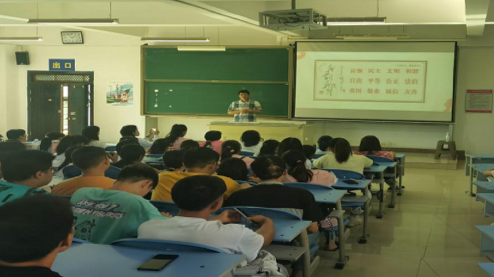 会上,陈阳老师讲述了培养社会主义核心价值观的重要性,“一个国家的强盛,离不开精神的支撑;一个民族的进步,有助于文明的成长。”苏曦老师讲述了社会主义核心价值观深刻含义,引导学生自觉学习,主动践行。随后,陈阳老师通过抢答,随机抽问的方式,了解同学们对社会主义核心价值观内容的掌握情况。
