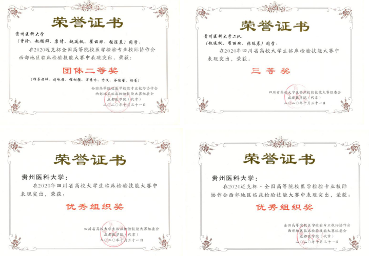 此次技能大赛邀请了我院院长黄海担任大赛组委会委员、副院长费樱担任大赛学术委员会委员、临检教研室主任莫非教授担任大赛仲裁委员会委员以及程树强老师、杨蕾老师担任临床基础检验竞赛站点和临床微生物检验竞赛站点裁判员。我院党委书记彭安辉带领由2017级医学检验技术专业曾珍、赵锁群、康倩、赵廷枫、张陈晨、翟丽琼6名同学组成的betway西汉姆联参赛队参加本次竞赛,经过赛前各专业老师的精心指导及同学们的用心准备,在此次竞赛中表现突出荣获西部地区临床检验技能大赛团体二等奖、优秀组织奖及四川省高校大学生临床检验技能大赛三等奖、优秀组织奖。