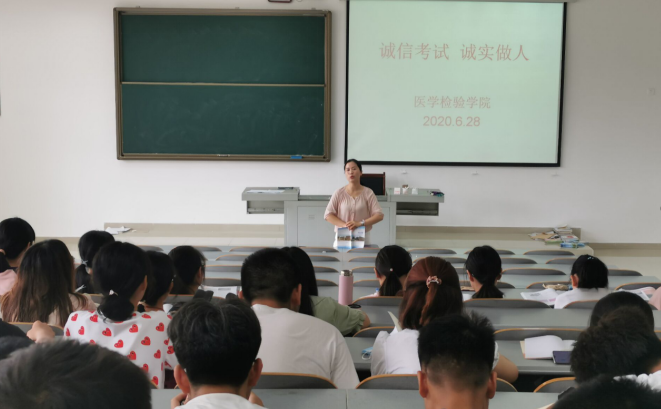 为了加强betway西汉姆联平台“三风”建设,督促同学们以积极的心态迎接期末考试,树立诚信考试的观念,营造公平、诚信的考试氛围。院医学检验技术2018级、2019级同学们分别于6月24日和6月30日在南校区1202、4401教室召开了诚信考试教育动员会。会议由辅导员周友凤老师主持。