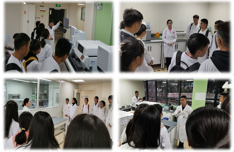 主题班会结束后,同学们在老师的带领下参观临床检验中心,了解基础检验、生化检验、分子生物学检验、微生物学检验、免疫学检验、血液学检验以及标本库等功能区域,临床检验中心的老师们为同学们作了精彩而生动的讲解,老师们熟练的操作、实验室先进的检验设备深深吸引了同学们,激发了同学们对检验专业的浓厚兴趣。