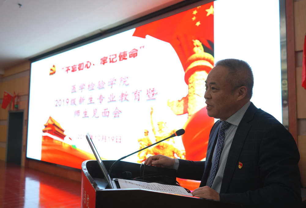 院长黄海从医学检验概况及历史、办学规模、教师队伍、取得的成就等方面向同学们介绍了betway西汉姆联平台的发展和医学检验技术专业概况。他要求同学们,要扎实学好专业知识、做好人生和学习规划,树立终身学习的观念,与时俱进、积极适应新时代医学发展对医学检验人才提出的新要求。