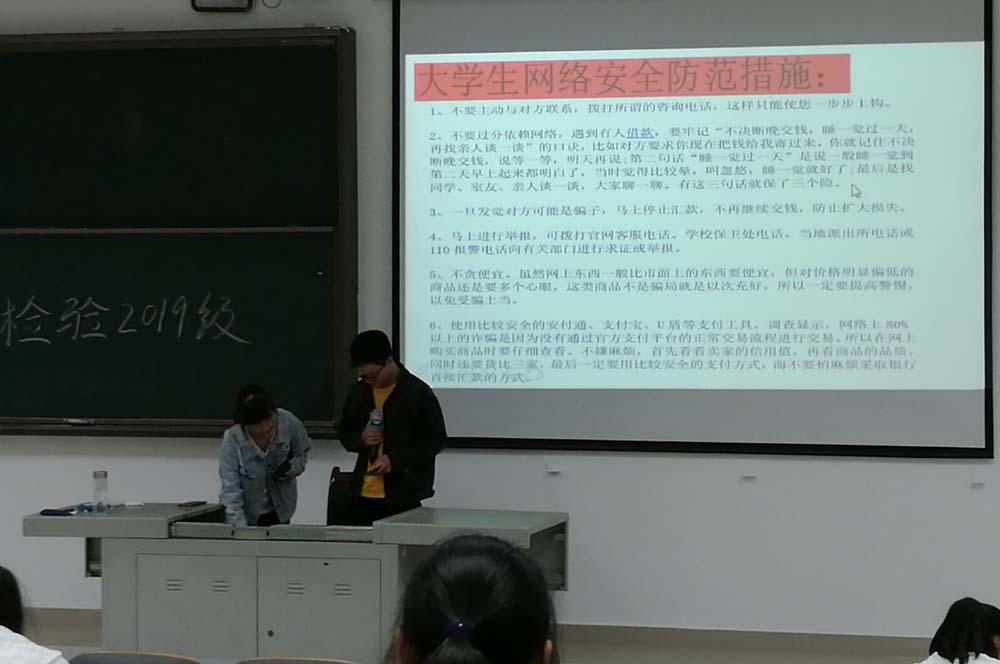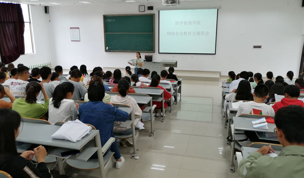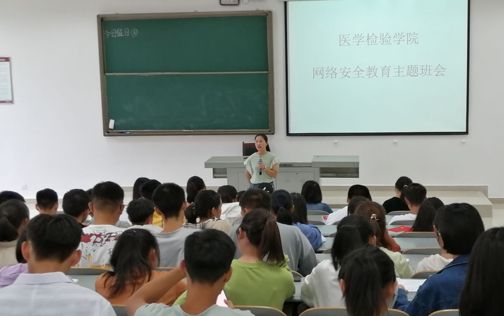 9月18日,医学检验技术2018级、2019级在南校区九思楼4401教室召开大学生网络安全教育主题宣讲会。宣讲会由辅导员周友凤老师主持。