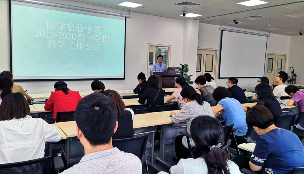 首先,蒋红梅对新学期betway西汉姆联平台教学管理岗位人员变动及人事任免情况进行了通报。黄海院长依照学科建设发展趋势,对检验学院教研室建制变动情况及教研室教学工作进行了说明,强调教学工作是我们立院之本,必须高度重视教学质量。同时,对本学期常规教学工作外的专项工作,国家一流专业的申报、增博扩硕和学科评估等进行了布置。教学科研管理科就学校和学院相关教学纪律进行了重申,要求各教研室、各位教师提高对教学工作的认识,规范日常教学工作行为,加强常规教学管理,树立爱岗敬业精神,认真履行岗位职责,保证教学活动正常、有序、高效运行。