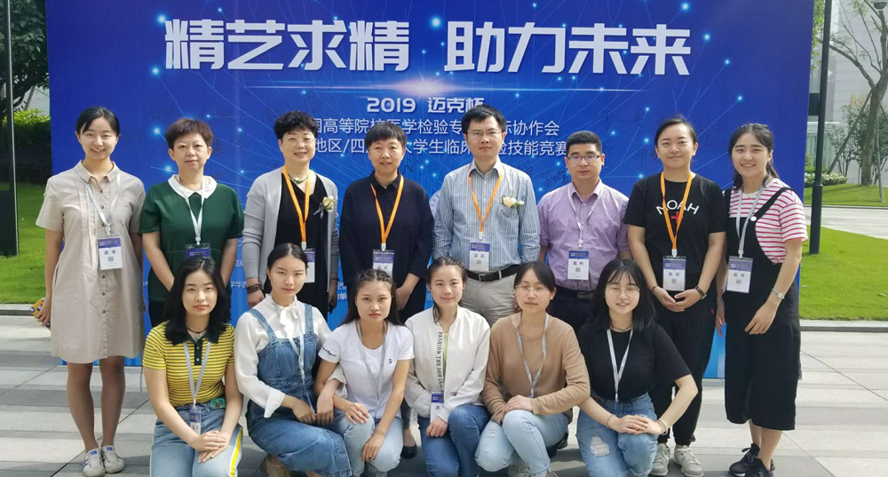2015级医学检验技术本科学生张妮、代薇露、马润、黄佑娇、杨小余、蔡信平、陈黎和石荟函组成的参赛代表队在与其余八所高校两天比赛的激烈角逐中,展现出扎实的专业基本功和娴熟的专业技能操作,取得了团体三等奖和优秀组织奖的好成绩。