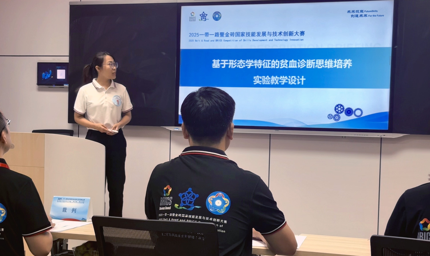 在教师组比赛中,重点考察了教学创新与临床服务水平,内容涵盖基础知识与应用、现代实验技术运用及创新实验教学设计等模块。我院万秀方老师凭借扎实的理论功底和精湛的临床检验技能,从初赛中脱颖而出,顺利进入说课环节,并以《基于形态学特征的贫血诊断思维培养》创新教学设计摘得二等奖。该设计通过案例导入的情景教学,引导学生探究问题根源,培养自主学习与团队协作能力,充分体现了“以学生发展为中心”的理念。孙朝琴与许修颖两位老师分别在临床基础检验、临床分子检验赛道表现突出,双双获得三等奖,展现了年轻教师的教学素养与创新能力。