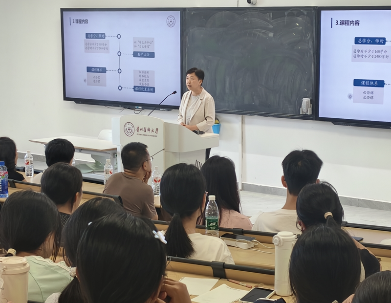 副院长费樱对医学检验技术专业培养方案展开深入解读。她从专业人才培养的核心目标出发,阐述了要培养什么样的医学检验人才,同时系统梳理了课程体系的整体架构,让新生对大学阶段的学习内容与成长路径有了清晰认识。