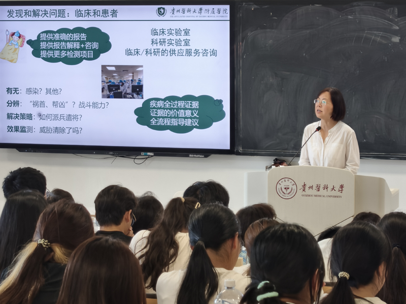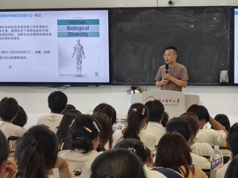 临床基础检验与血液学教研室朱丽英老师、临床微生物与免疫学教研室余芳老师、临床生物化学与分子生物学教研室黄健老师依次对专业核心课程进行了介绍,为新生搭建起清晰的专业知识体系。