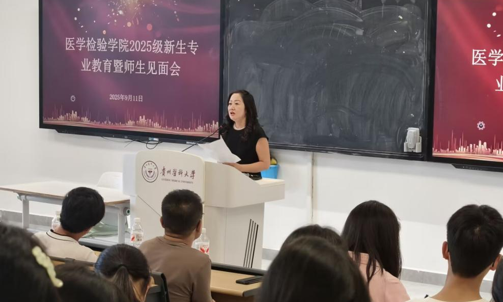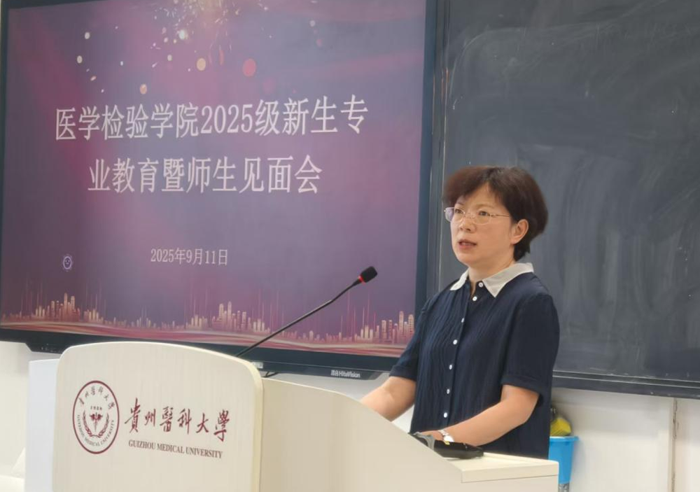 会议开始,院长谭玉洁围绕专业展开介绍,从国内外医学检验发展现状、专业特色与未来趋势等方面进行详细阐述,并为新生送上开学寄语,鼓励大家铸大格局、成大情怀,学大智慧、立大志向,努力成为人民健康的守护者与民族复兴的栋梁材。